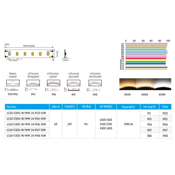 High CRI full spectrum led strip natural white CRI>98 14.4W IP68 rating 24V Grow Light strips Images |